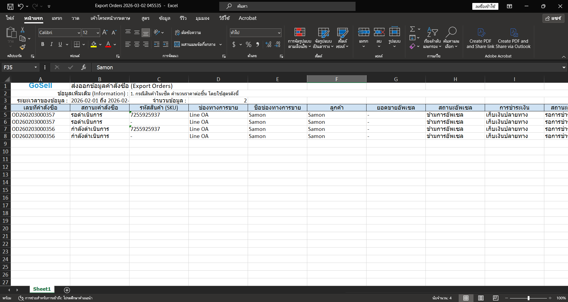 5. เลือกข้อมูลคำสั่งซื้อตามที่ต้องการ