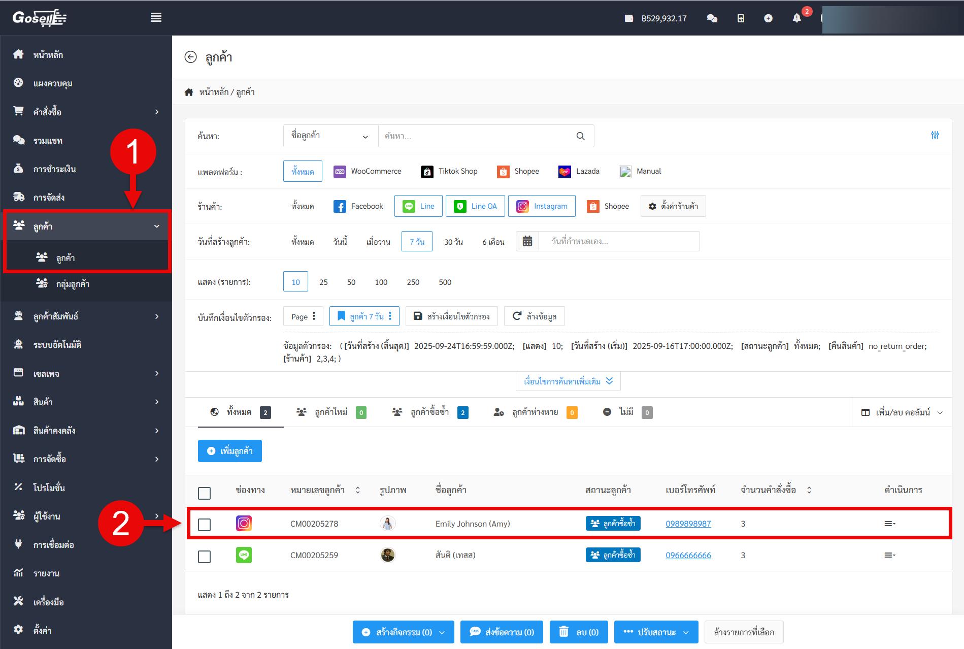 ให้ผู้ใช้งานไปที่เมนูลูกค้า จากนั้นคลิกไปที่ชื่อของลูกค้าที่ต้องการตรวจสอบข้อมูล