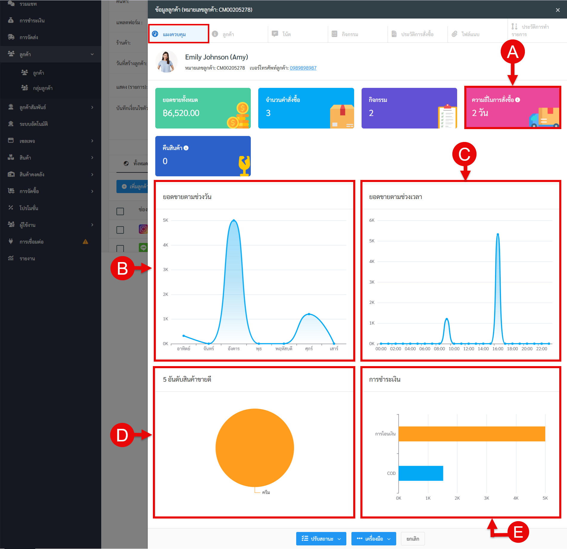 ระบบได้มีการ ปรับปรุงและอัปเดตในข้อมูลลูกค้า ให้สามารถใช้งานได้อย่างมีประสิทธิภาพมากยิ่งขึ้น ช่วยให้ร้านค้าสามารถวิเคราะห์และบริหารความสัมพันธ์กับลูกค้าได้อย่างมีประสิทธิภาพและแม่นยำมากขึ้น โดยมีรายละเอียดดังนี้