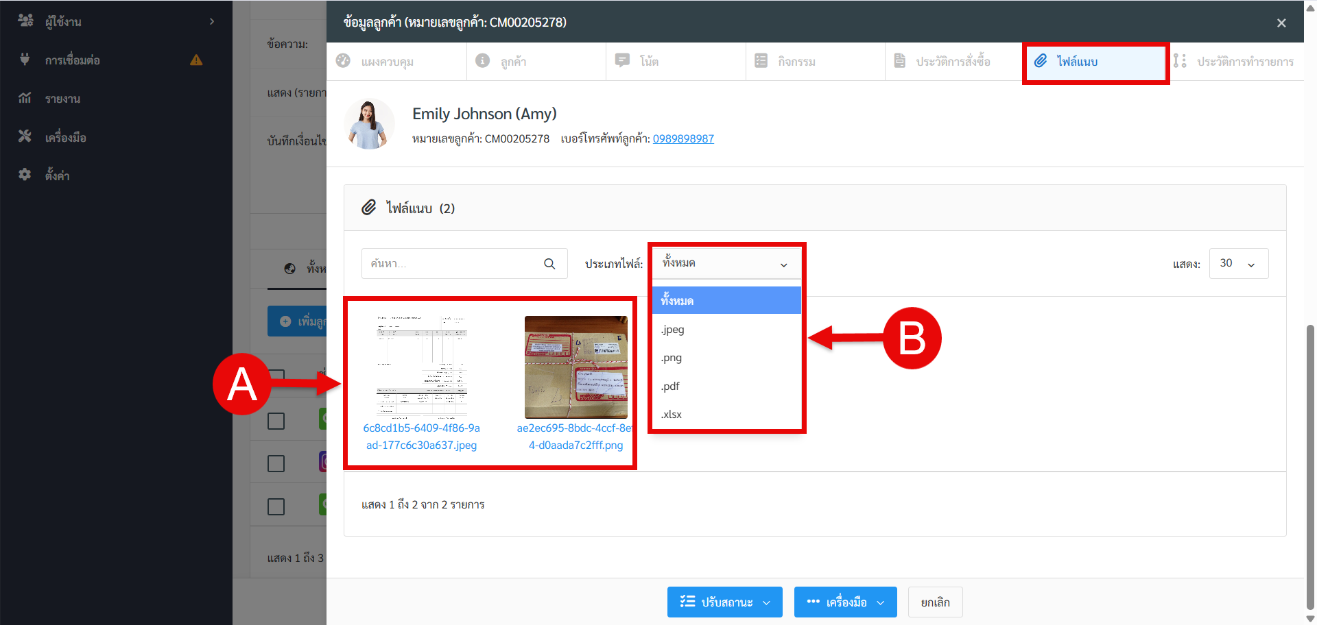 A : ไฟล์แนบทั้งหมดของลูกค้า