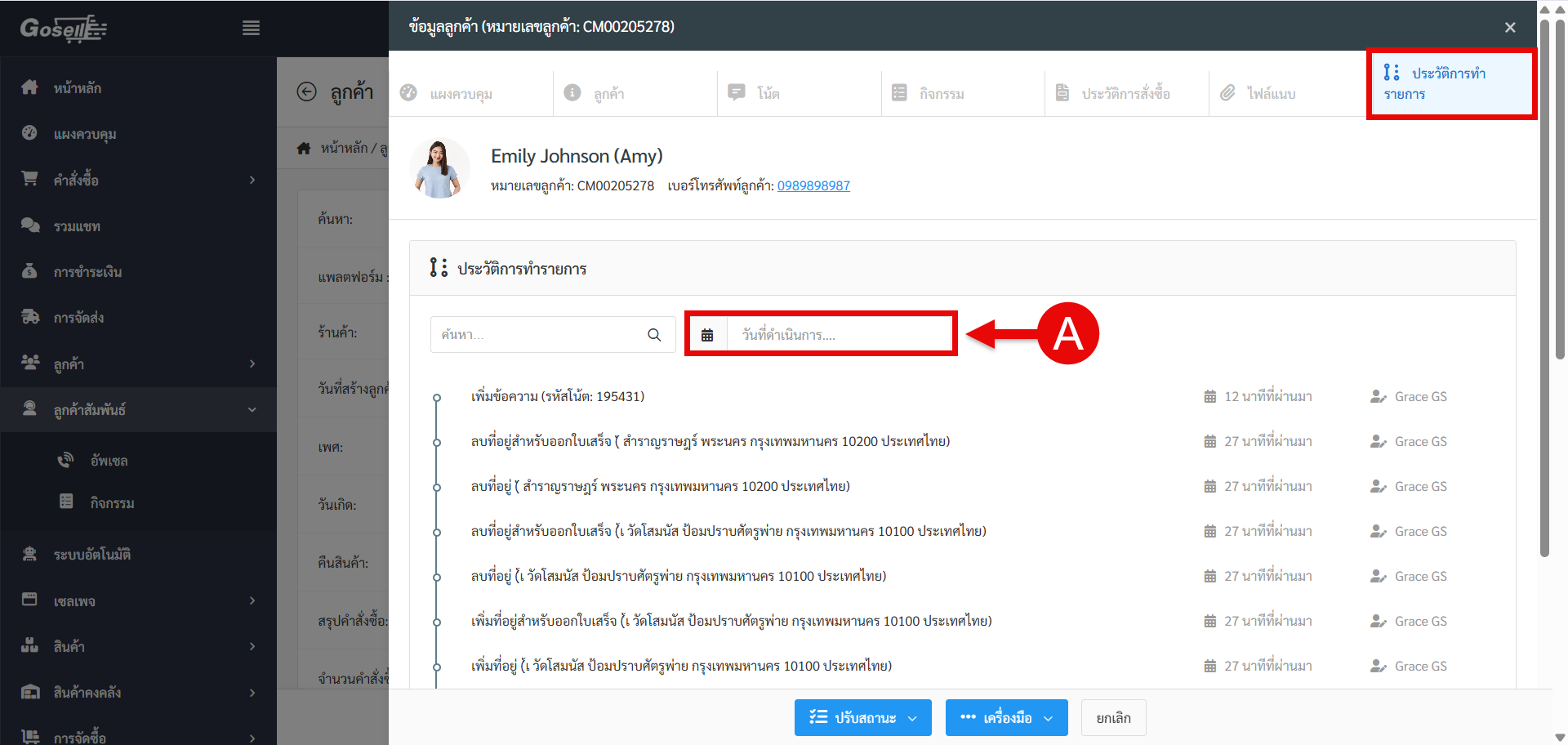 แถบแผงควบคุม ของข้อมูลลูกค้า จะแสดงรายละเอียดข้อมูลเพิ่มขึ้นดังนี้