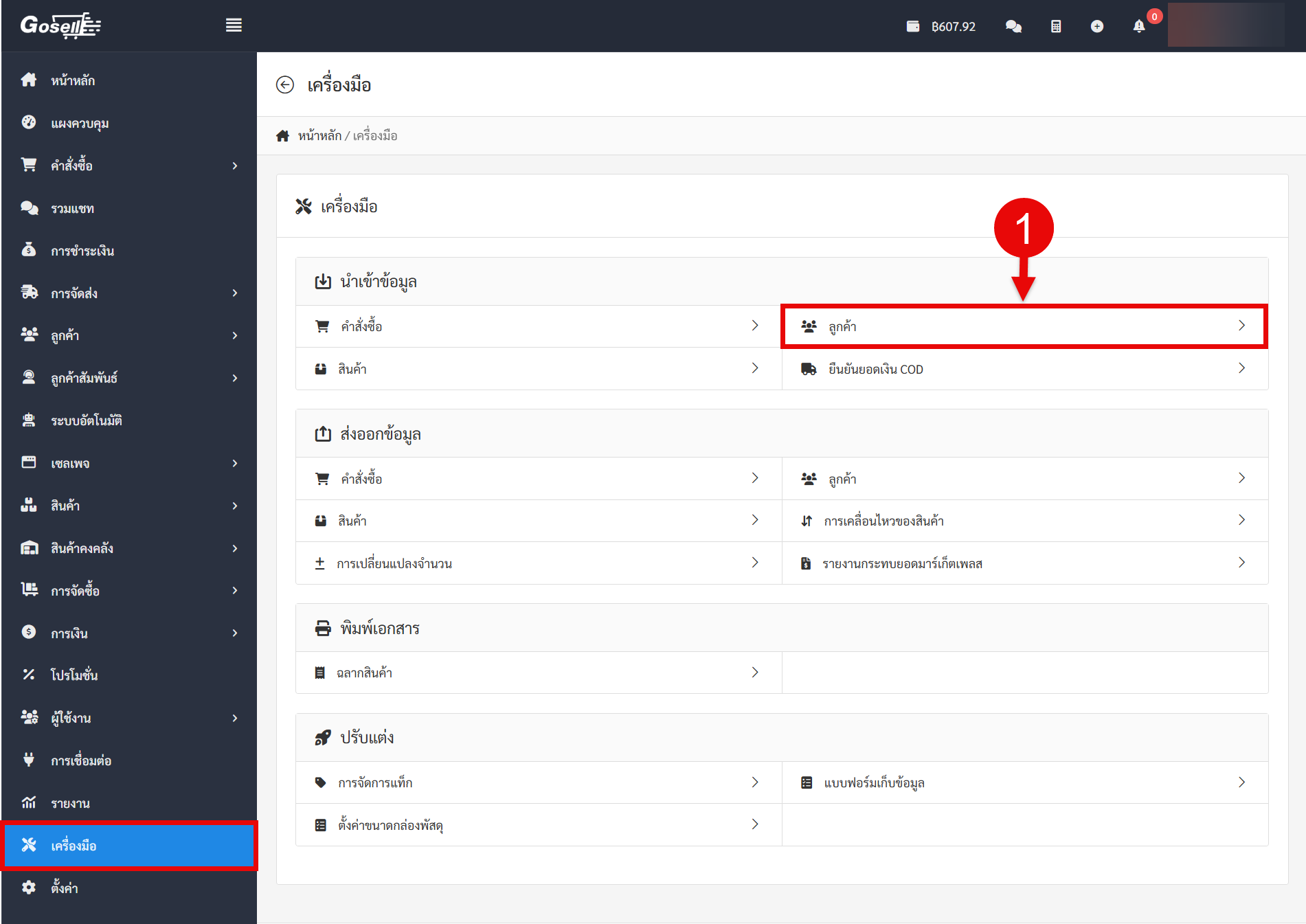 ไปที่เมนู เครื่องมือ > เลือก นำเข้าลูกค้า