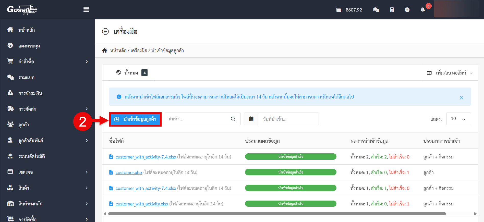 เพื่อให้ร้านค้าเริ่มต้นทำ CRM บนระบบ GoSell ได้รวดเร็วยิ่งขึ้น ระบบได้เพิ่มรูปแบบการนำเข้าข้อมูลใหม่ในส่วนของนำเข้าข้อมูลลูกค้า