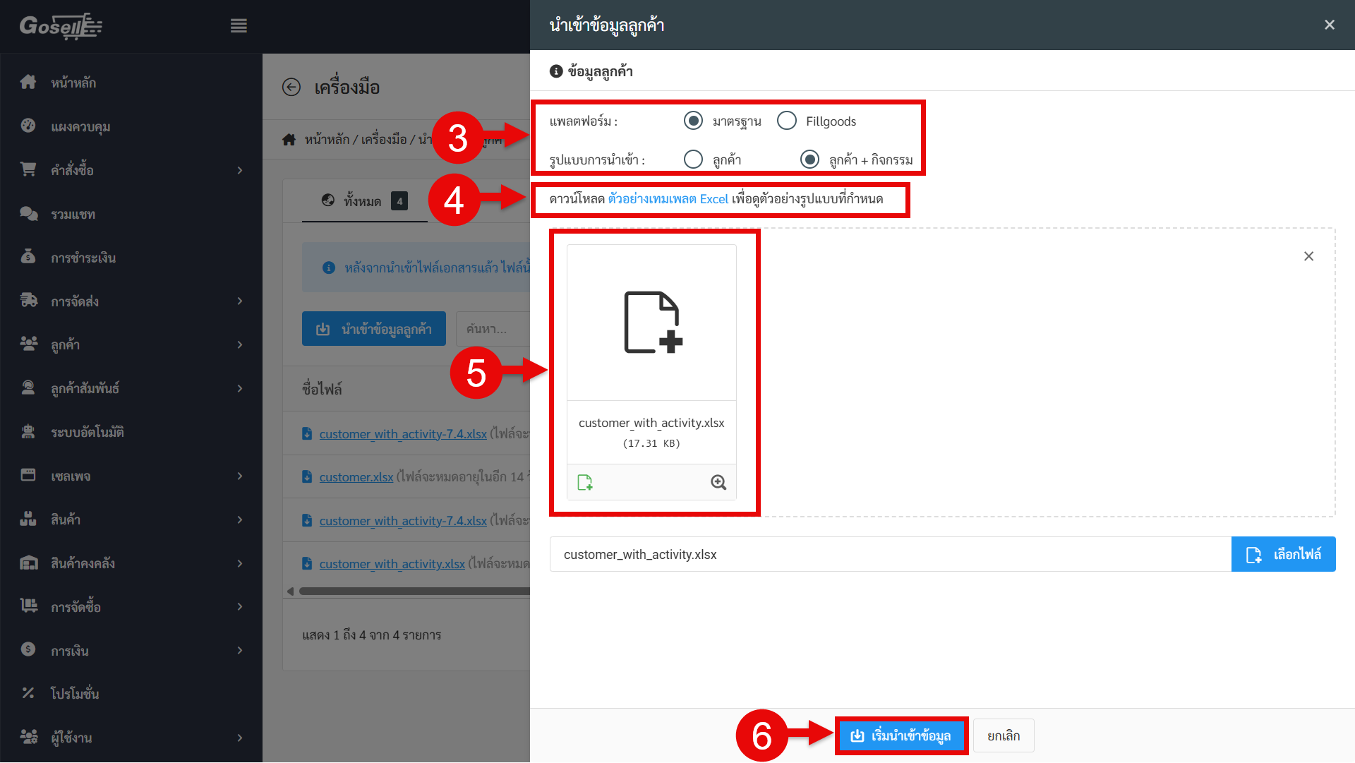 กรอกข้อมูลลูกค้าพร้อมแผนกิจกรรมที่ต้องการ และอัปโหลดกลับเข้าสู่ระบบ GoSell